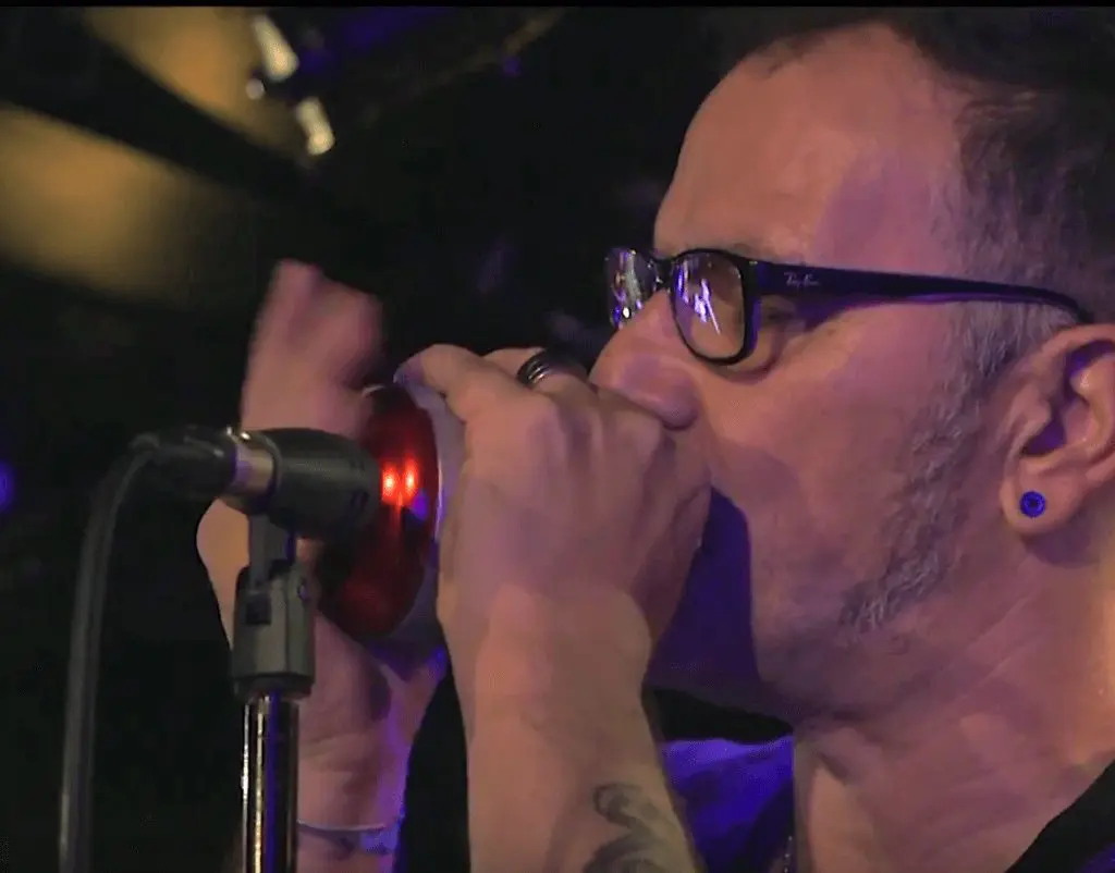 Richard Gjems with his Harp Wah on a minor harmonica.